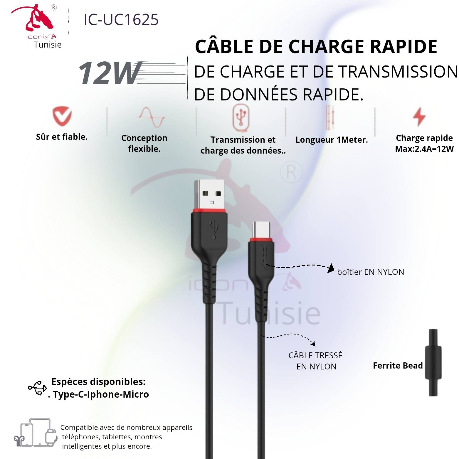Câble de charge et de transmission de données Power 12W, modèle IC-UC1625
